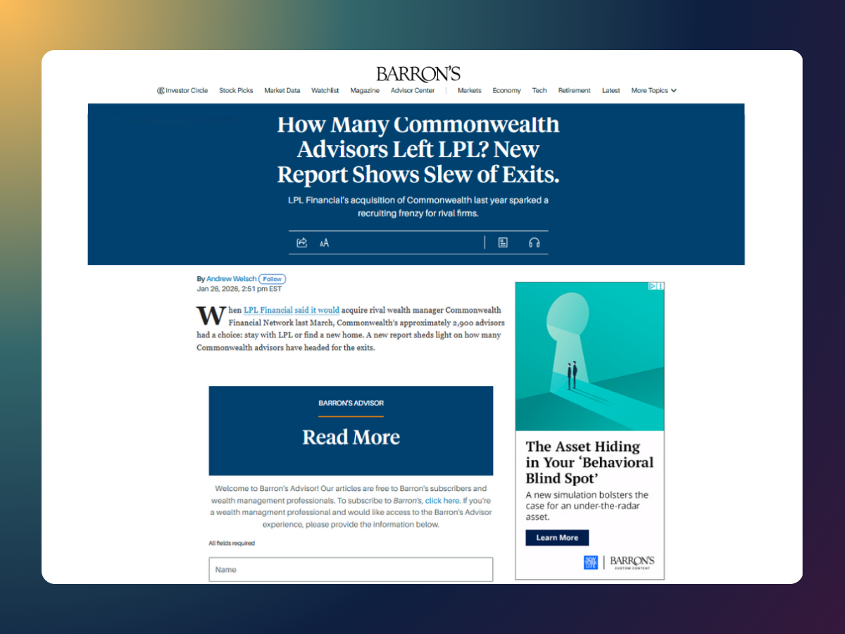 In this analysis of Commonwealth’s sale to LPL Financial, Muriel Consulting founder Shelby Nicholl offers expert insight on why roughly 22.5% of advisors left despite retention targets, what trends the data reveal for the industry, and how advisor priorities like boutique culture and technology are shaping post-merger moves.