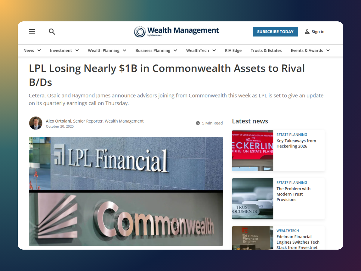 LPL Losing Nearly $1B in Commonwealth Assets to Rival B/Ds