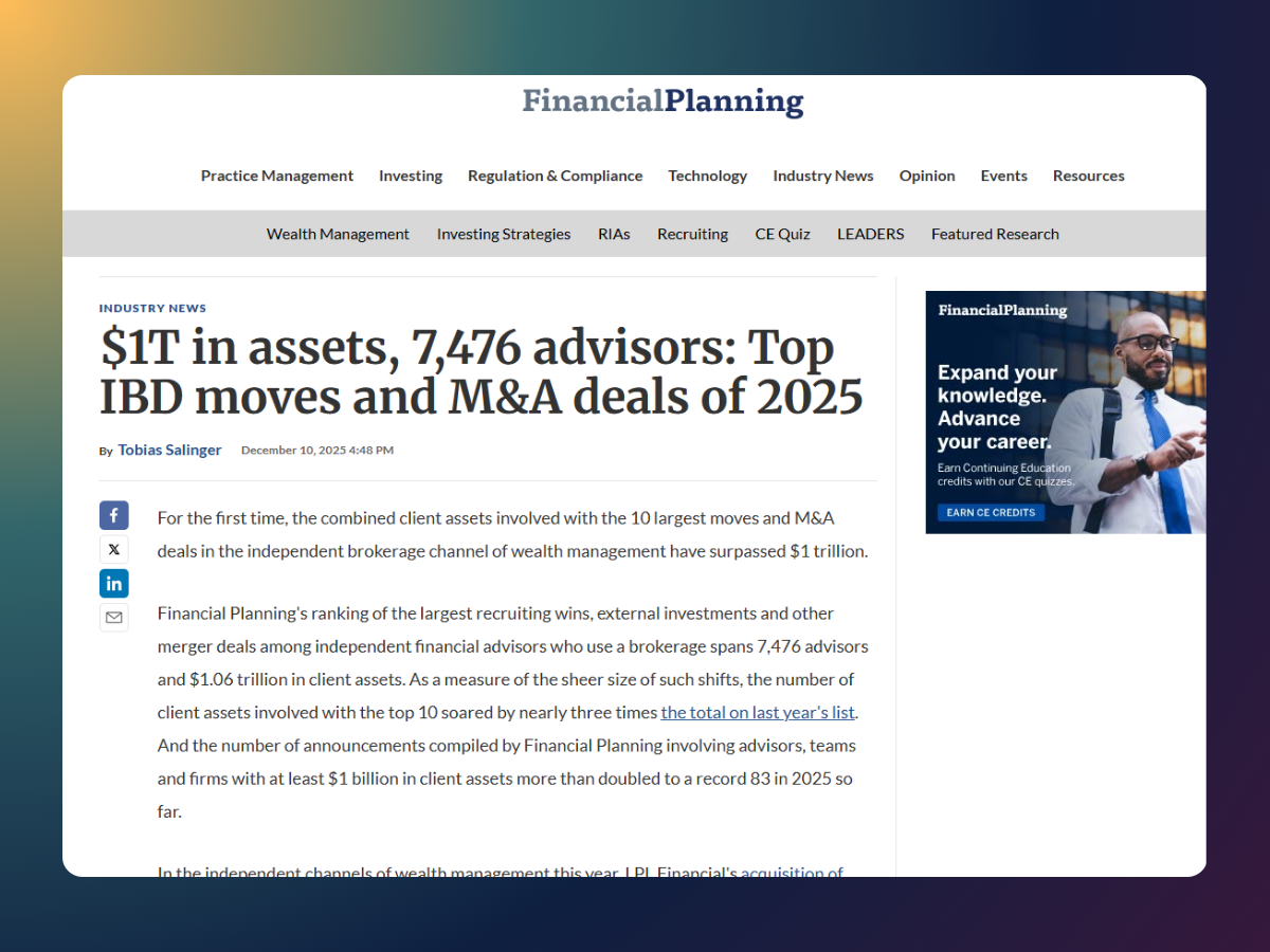 We’re grateful to the journalists, hosts, and partners who spotlight our work. If you’re looking for expert insight on advisor transitions, RIA launches, or the human side of going independent, we’re always open to meaningful collaboration.