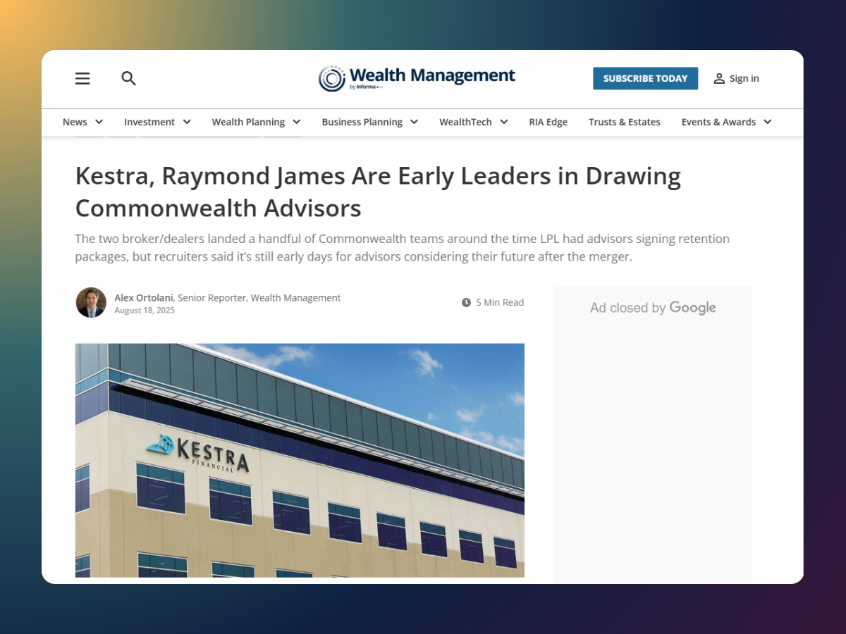 Kestra, Raymond James Are Early Leaders in Drawing Commonwealth Advisors